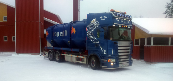 Säiliöauto ajaa lähialueelle pellettiä; täyttää yksityisiä ja julkisia lämpölaitoksia. Tehdas sijaitsee n. 30km päässä Ylivieskassa jossa valmistetaan korkealaatuista pellettiä.
